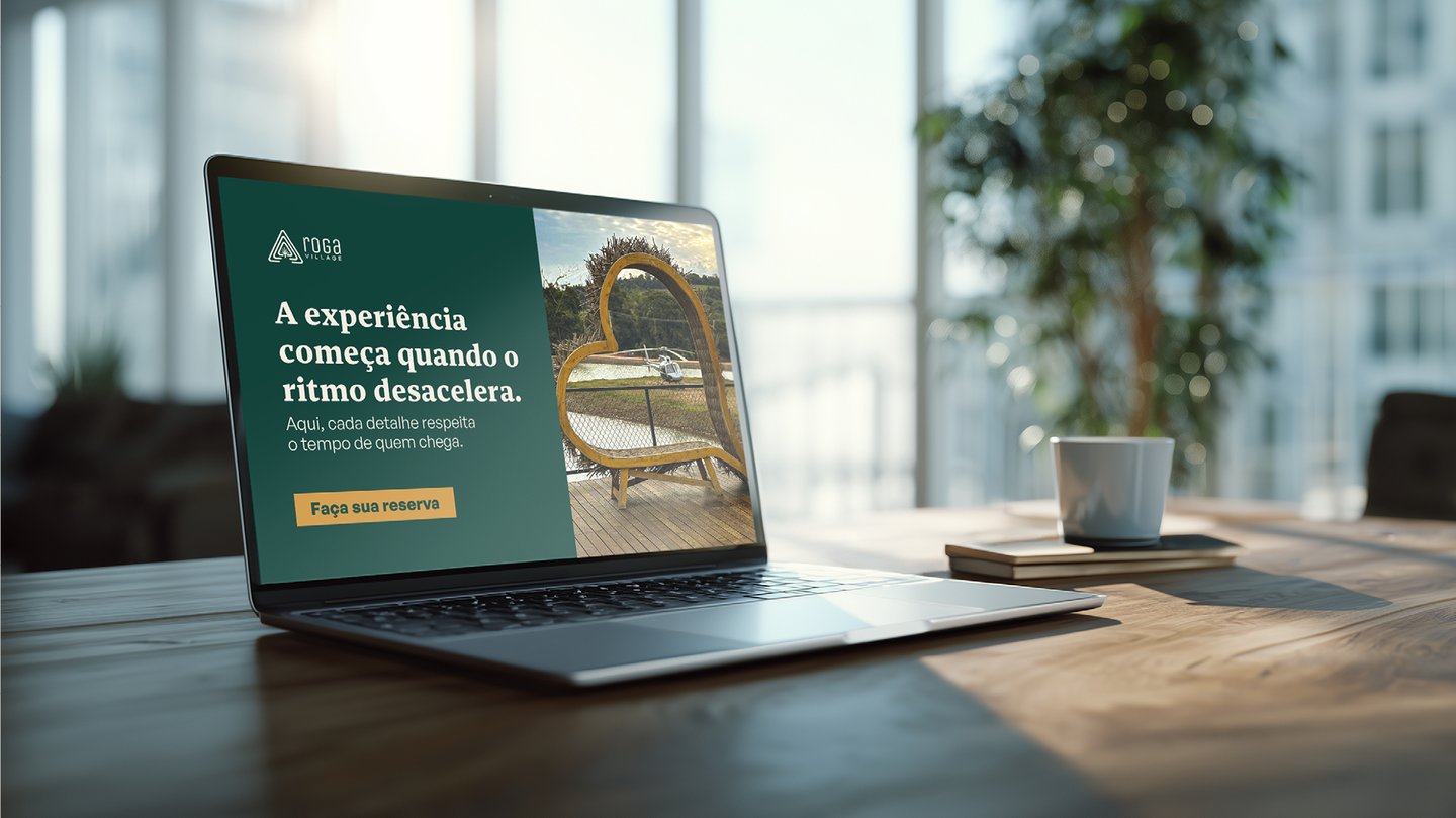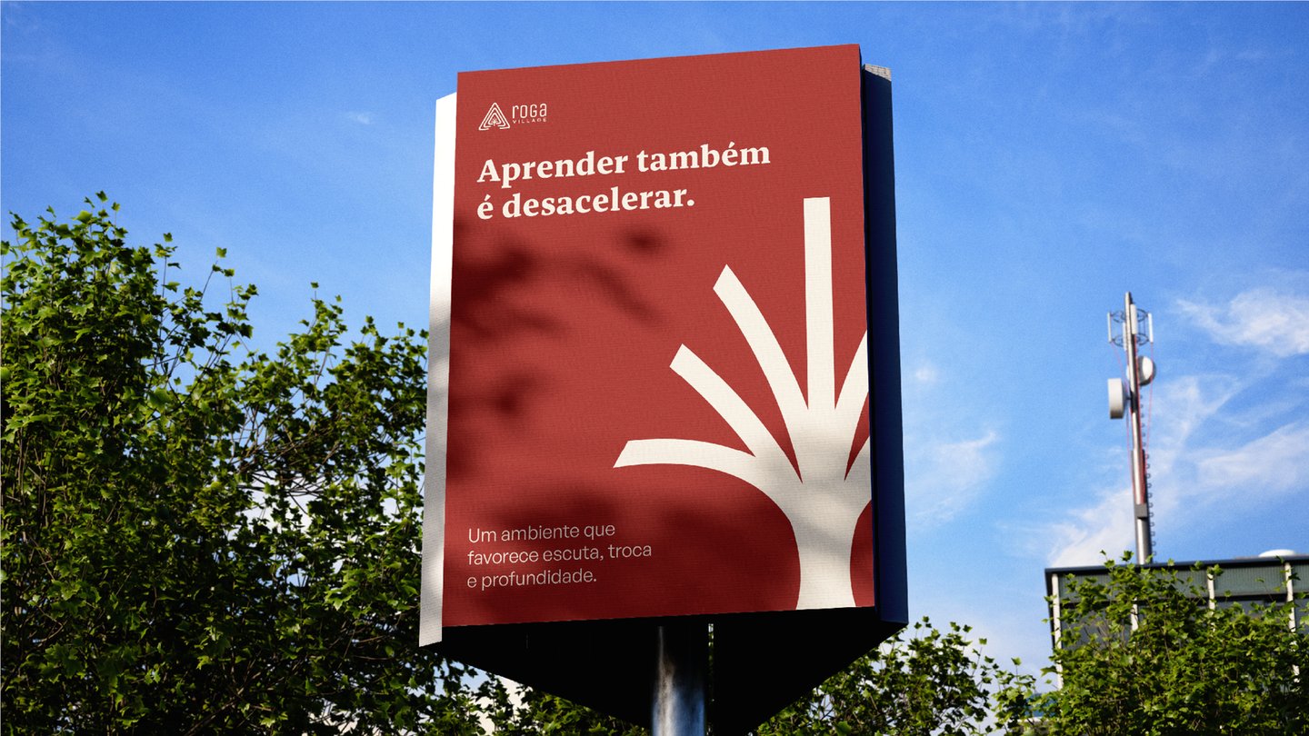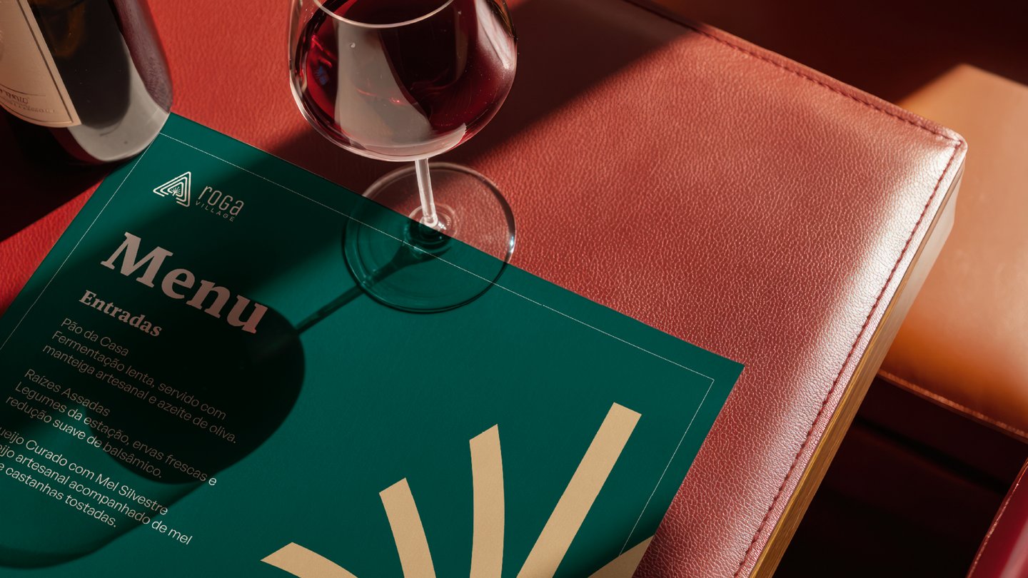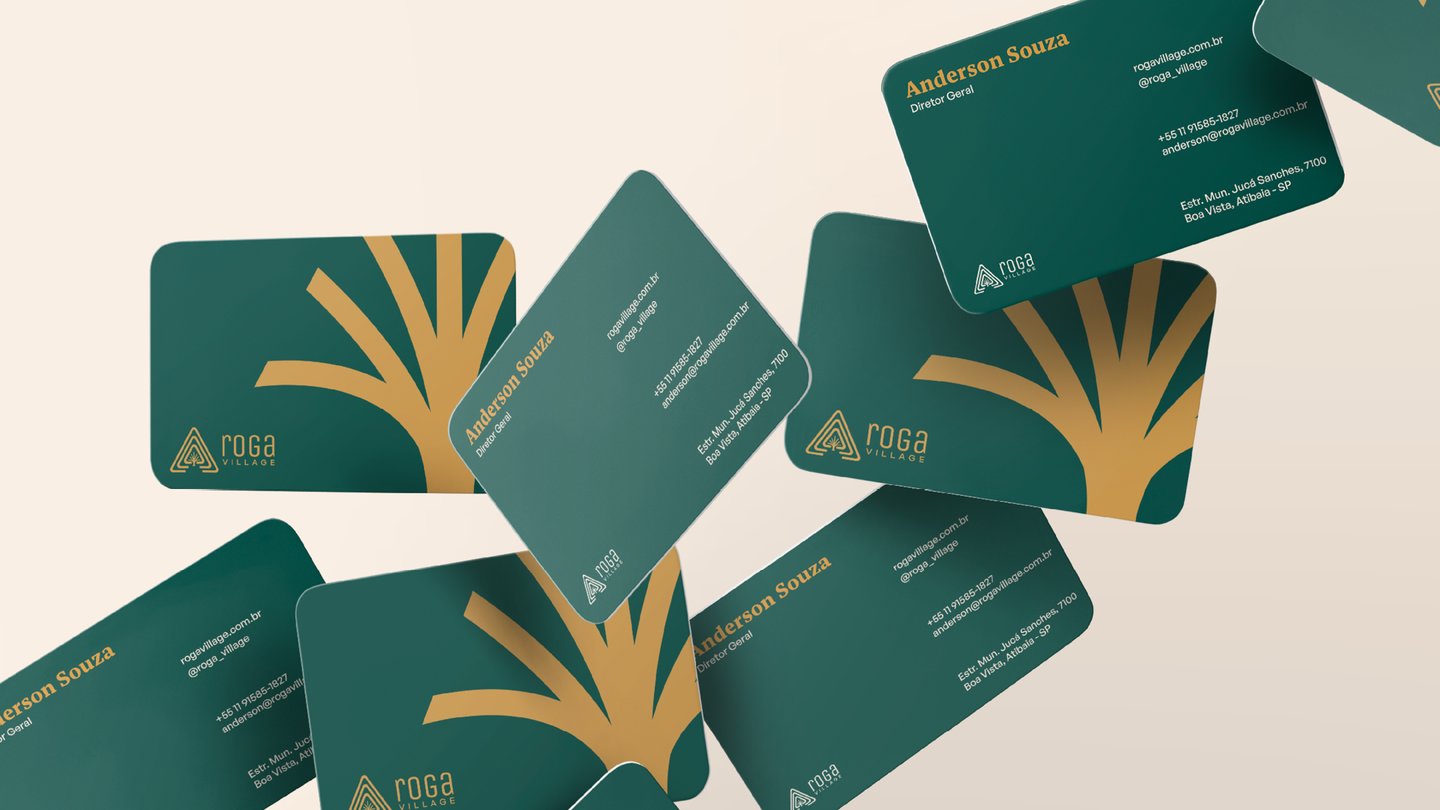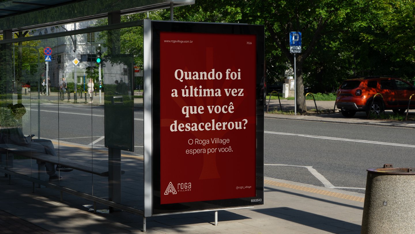 Na identidade visual, buscamos transmitir um universo orgânico, acolhedor e equilibrado. A paleta de tons terrosos e naturais conecta a marca diretamente ao seu ambiente, enquanto a arquitetura visual reflete a harmonia entre o rústico e o contemporâneo. O design prioriza a clareza e o respiro, traduzindo visualmente a sensação de silêncio e paz que o espaço proporciona, consolidando o Roga Village como um santuário de experiências memoráveis e autênticas.